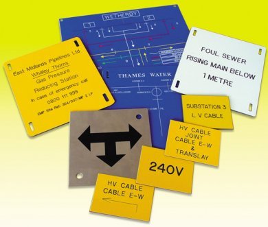 Πινακίδες με μεταξοτυπία, πινακίδες κατασκευασμένες με έγχυση, πινακίδες χαραγμένες με λέιζερ και πινακίδες από traffolyte (φαινολικό πλαστικό).