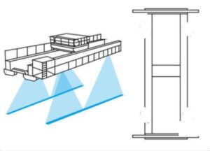 Οι προβολείς ασφαλείας γερανού εξασφαλίζουν την ασφάλεια των πεζών κάτω από γερανούς με την προβολή από παράλληλες δέσμες με τον γερανό ή ένα συμπαγές τετράγωνο που δημιουργείται από 4 δέσμες κάτω στο δάπεδο, το οποίο ειδοποιεί τους πεζούς για τη θέση του γάντζου ενός γερανού
