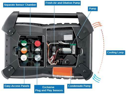 Το βασικό όργανο μετρησης είναι εξοπλισμένο με αισθητήρα O2. Τρεις επιπλέον αισθητήρες τοξικών αερίων (π.χ. CO, COlow, NO, NOlow, ΝΟ2 ή SO2) μπορούν να εναρμονιστούν χωριστά, ανά πάσα στιγμή, προκειμένου να προσαρμόσουν το μοντέλο 340 με τον καλύτερο δυνατό τρόπο στην αντίστοιχη εργασία μέτρησης. Ο αισθητήρας μπορεί να αλλάζεται απευθείας από το χρήστη με ελαχιστοποιίηση του χρόνου σέρβις.